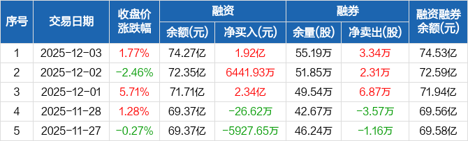 北方稀土:融资净买入1.92亿元,两市排名第七(12-03)