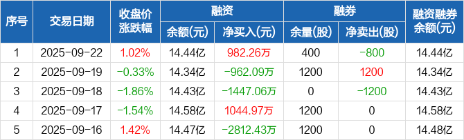 浙江东日:融资净买入982.26万元,融资余额14.44亿元(09-22)