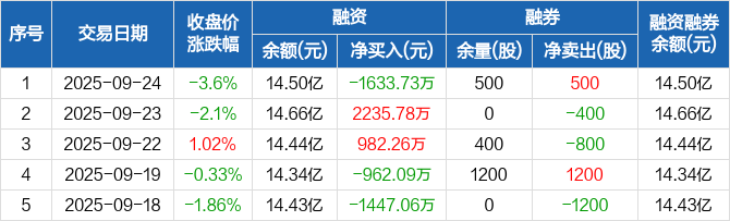 浙江东日:融资净偿还1633.73万元,融资余额14.5亿元(09-24)