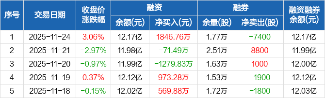 东睦股份:融资净买入1846.76万元,融资余额12.17亿元(11-24)