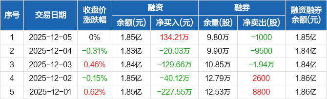 三峡水利:融资净买入134.21万元,融资余额1.85亿元(12-05)