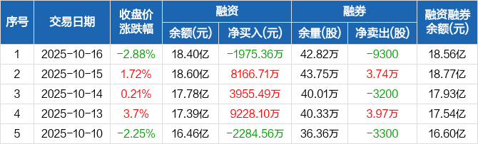 中国卫星:融资净偿还1975.36万元,融资余额18.4亿元(10-16)