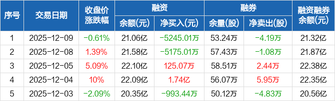 中国卫星:融资净偿还5245.01万元,融资余额21.06亿元(12-09)