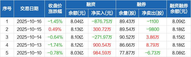 浙江东方:融资净偿还876.75万元,融资余额8.04亿元(10-16)