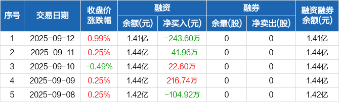 郑州煤电:融资净偿还243.6万元,融资余额1.41亿元(09-12)