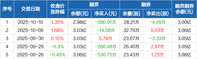 兰花科创:融资净偿还560.91万元,融资余额2.98亿元(10-10)