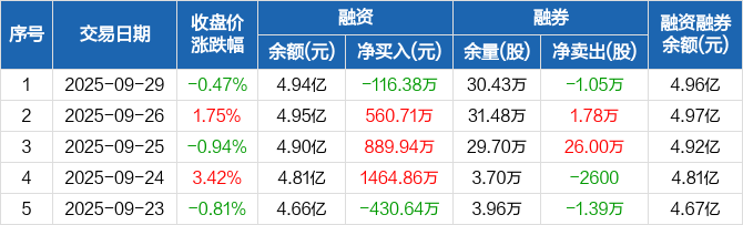 铁龙物流:融资净偿还116.38万元,融资余额4.94亿元(09-29)