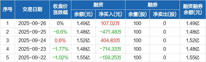 金健米业:融资净买入107.02万元,融资余额1.49亿元(09-26)