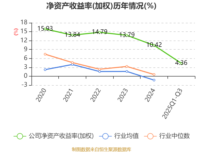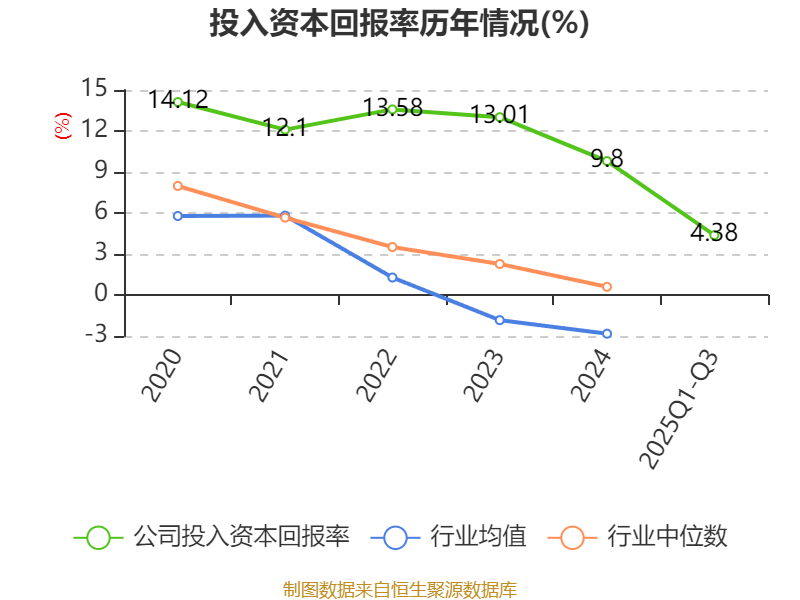 盈利能力方面, 2025年前三季度公司加权平均净资产收益率为4.36%,同比下降0.76个百分点。公司2025年前三季度投入资本回报率为4.38%,较上年同期上升0.11个百分点。