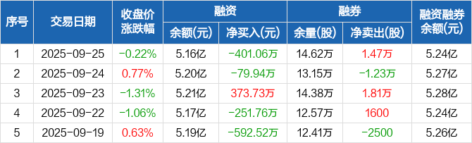 重庆啤酒:融资净偿还401.06万元,融资余额5.16亿元(09-25)