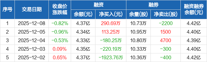 重庆啤酒:融资净买入290.69万元,融资余额4.37亿元(12-08)
