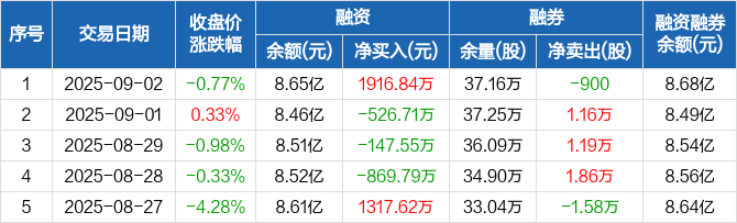 东湖高新:融资净买入1916.84万元,融资余额8.65亿元(09-02)