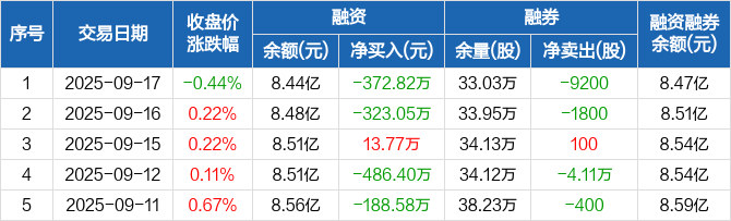 东湖高新:融资净偿还372.82万元,融资余额8.44亿元(09-17)
