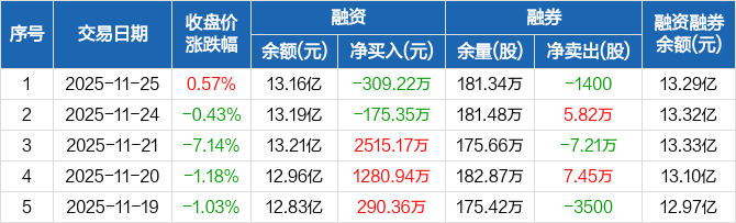 华创云信:融资净偿还309.22万元,融资余额13.16亿元(11-25)