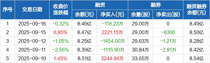 中体产业:融资净偿还118.23万元,融资余额8.46亿元(09-16)