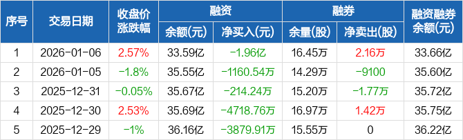 巨化股份:融资净偿还1.96亿元,两市排名第11(01-06)