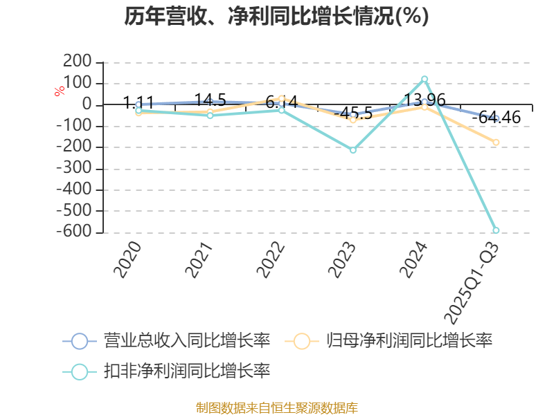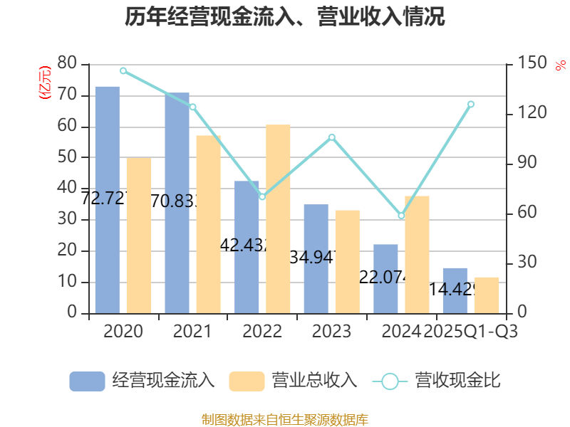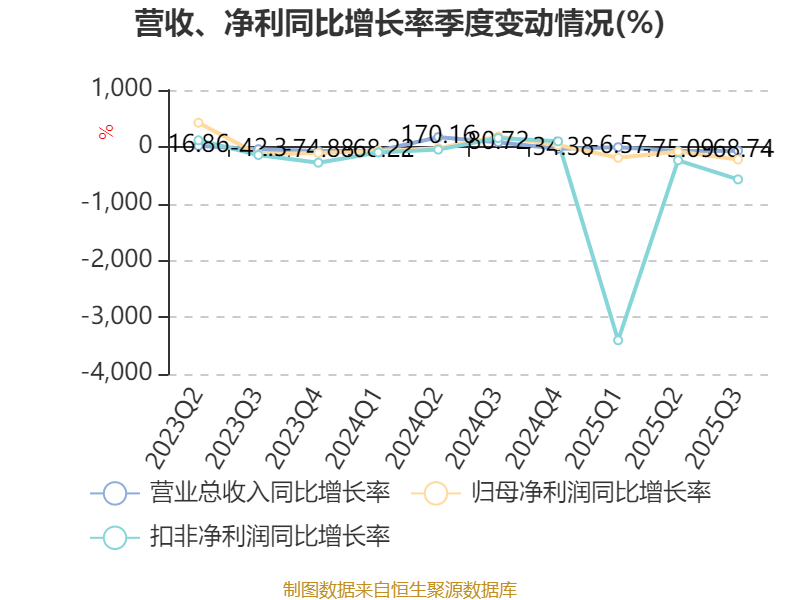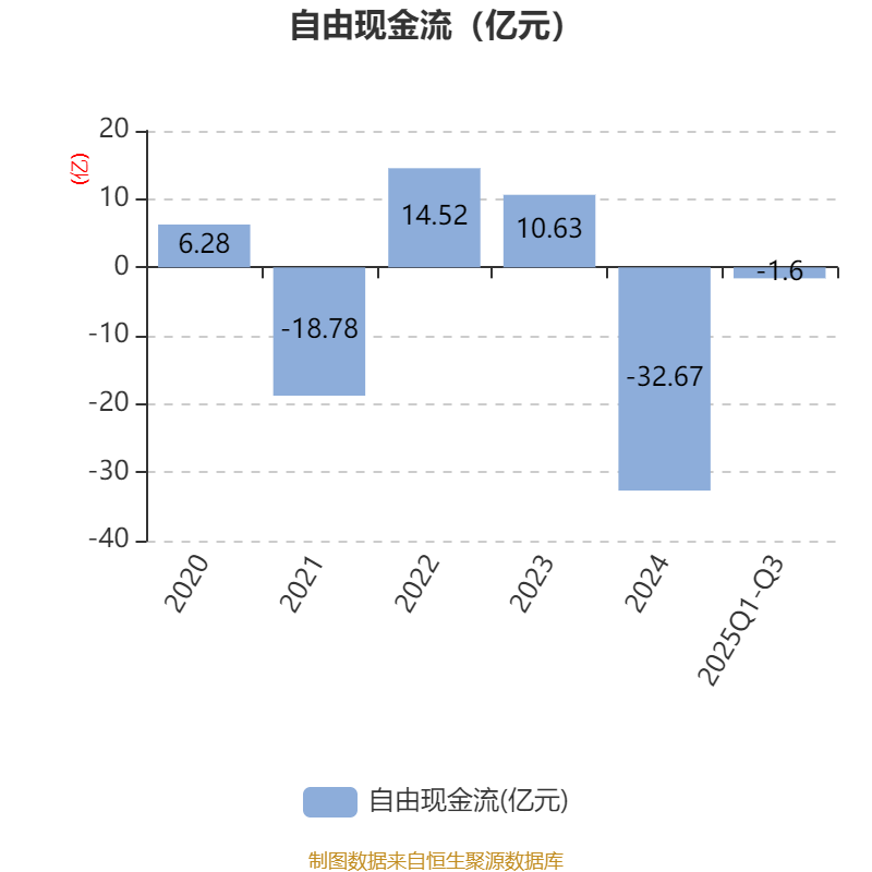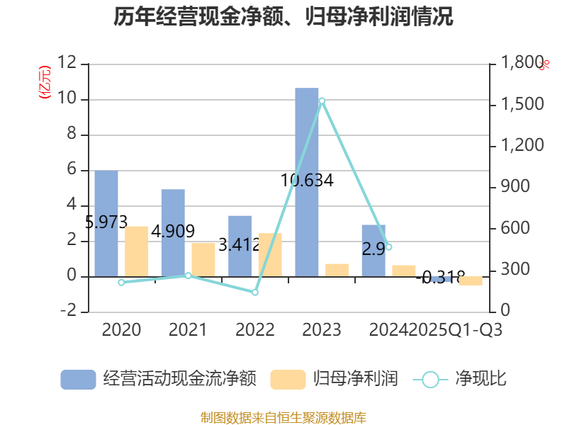 2025年前三季度,公司经营活动现金流净额为-3177.78万元,同比减少1.98亿元;筹资活动现金流净额-2.68亿元,同比增加1.43亿元;投资活动现金流净额-897.27万元,上年同期为7825.73万元。