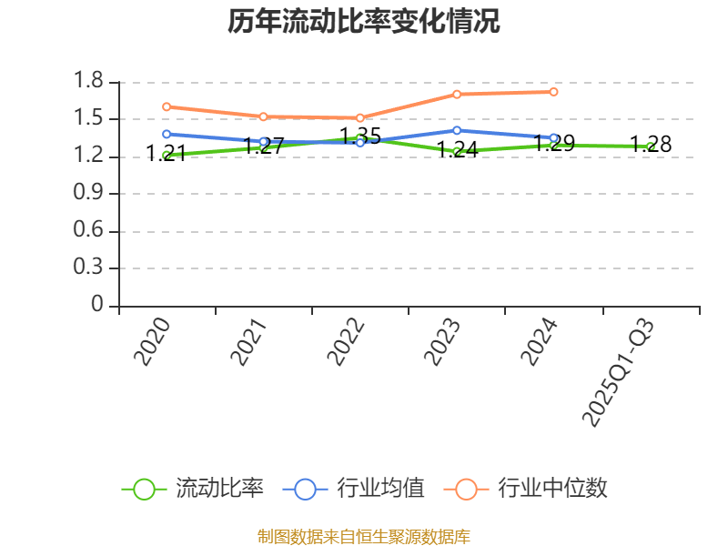 2025年前三季度,公司流动比率为1.28,速动比率为0.21。
