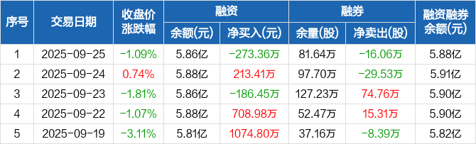 福田汽车:融资净偿还273.36万元,融资余额5.86亿元(09-25)