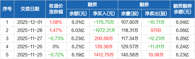 福田汽车:融资净偿还176.75万元,融资余额6.01亿元(12-01)