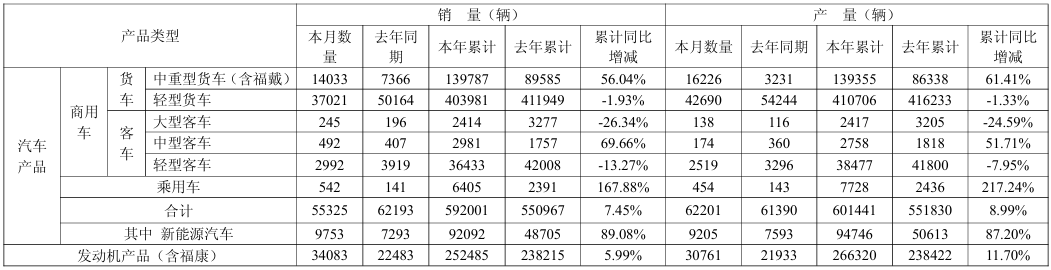 福田汽车11月份销量5.53万辆 产量6.22万辆