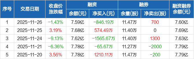 联美控股:融资净偿还846.19万元,融资余额7.59亿元(11-26)