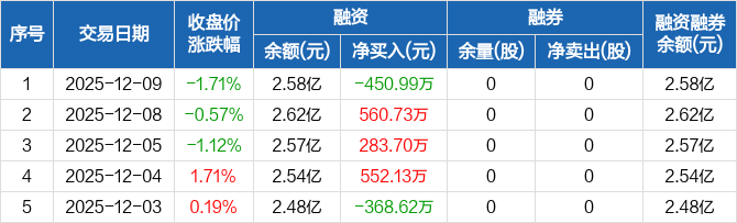 武汉控股:融资净偿还450.99万元,融资余额2.58亿元(12-09)