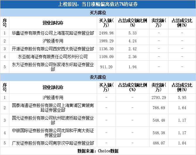 沪股通现身龙虎榜,太原重工涨停(09-26)