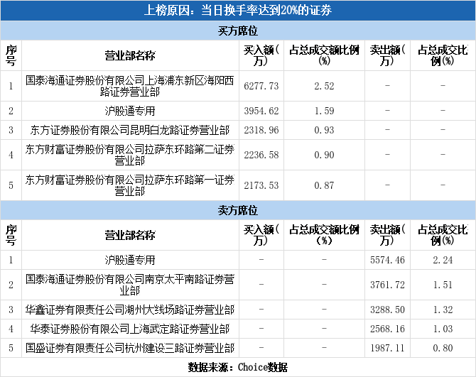 沪股通现身龙虎榜,黄河旋风换手率达30.27%(10-15)