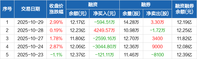 中国巨石:融资净偿还594.51万元,融资余额12.17亿元(10-29)