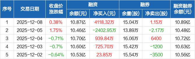 中国巨石:融资净买入4118.32万元,融资余额10.87亿元(12-08)
