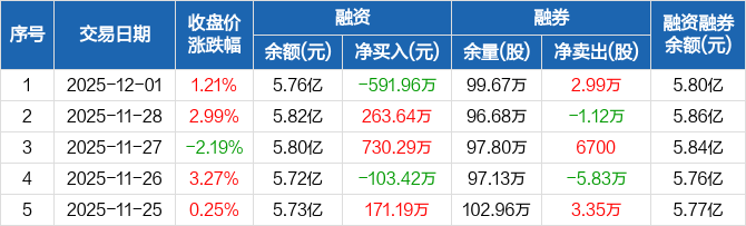 安通控股:融资净偿还591.96万元,融资余额5.76亿元(12-01)