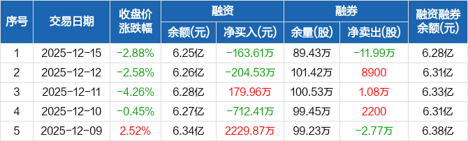 安通控股:融资净偿还163.61万元,融资余额6.25亿元(12-15)