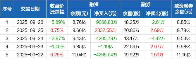 生益科技:融资净偿还9066.83万元,融资余额8.76亿元(09-26)