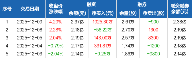 光电股份:融资净买入1925.3万元,融资余额2.37亿元(12-09)