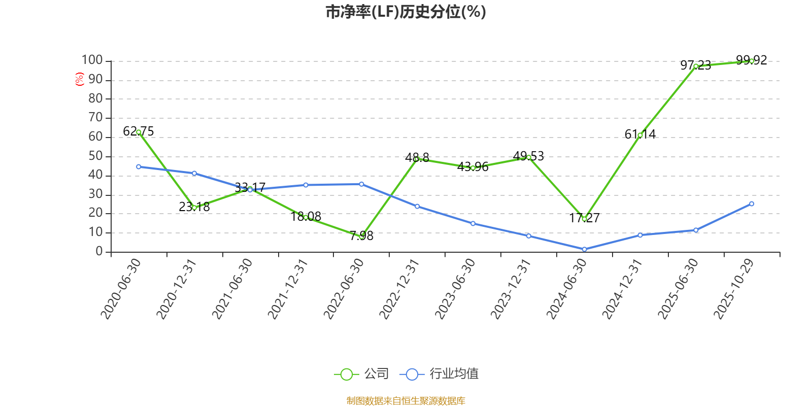 市盈率、市净率为负时,不显示当期分位数,会导致折线图中断。