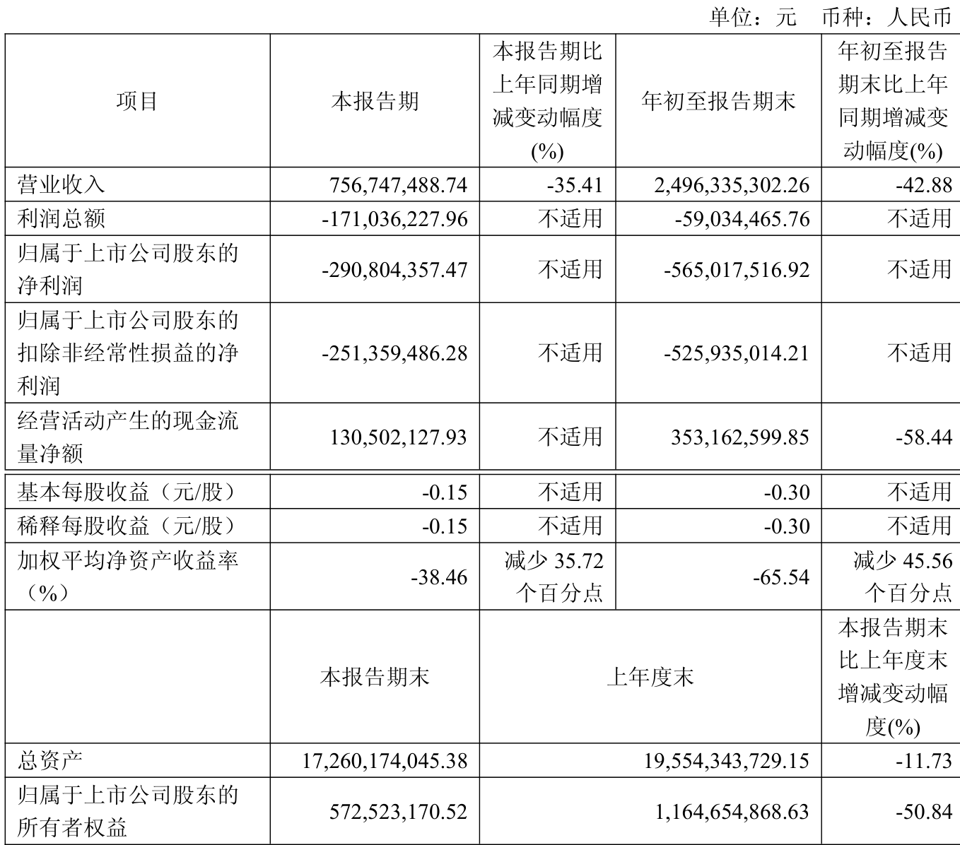 中证智能财讯珠免集团(600185)10月30日披露2025年第三季度报告。前三季度公司实现营业总收入24.96亿元,同比下降42.88%;归母净利润亏损5.65亿元,上年同期亏损5.91亿元;扣非净利润亏损5.26亿元,上年同期亏损8.92亿元;经营活动产生的现金流量净额为3.53亿元,同比下降58.44%;报告期内,珠免集团基本每股收益为-0.3元,加权平均净资产收益率为-65.54%。