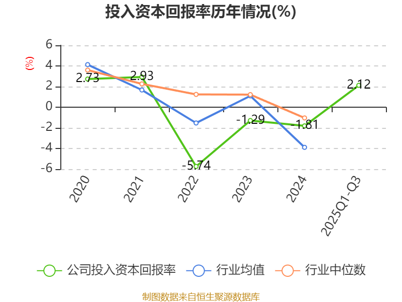 盈利能力方面, 2025年前三季度公司加权平均净资产收益率为-65.54%,同比下降49.86个百分点。公司2025年前三季度投入资本回报率为2.12%,较上年同期上升4.46个百分点。