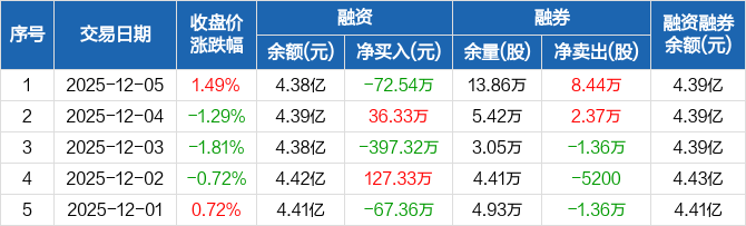 莲花控股:融资净偿还72.54万元,融资余额4.38亿元(12-05)