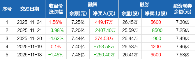 有研新材:融资净买入449.17万元,融资余额7.25亿元(11-24)