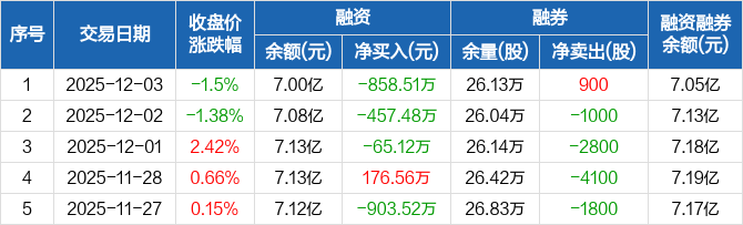 有研新材:连续3日融资净偿还累计1381.1万元(12-03)