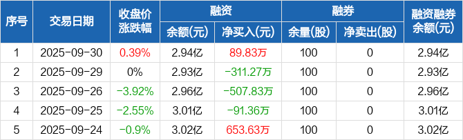 安彩高科:融资净买入89.83万元,融资余额2.94亿元(09-30)