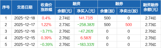安彩高科:融资净买入141.73万元,融资余额2.74亿元(12-18)