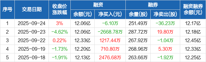 衢州发展:融资净偿还6.1万元,融资余额12.06亿元(09-24)