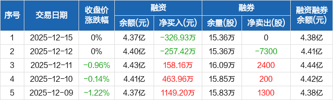 紫江企业:融资净偿还326.93万元,融资余额4.37亿元(12-15)