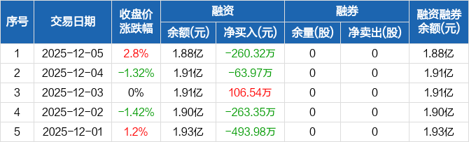 绿能慧充:融资净偿还260.32万元,融资余额1.88亿元(12-05)