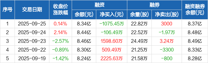浙江医药:融资净偿还1075.45万元,融资余额8.34亿元(09-25)