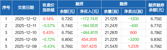 浙江医药:连续3日融资净偿还累计842.51万元(12-12)