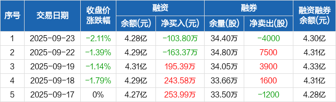 中再资环:融资净偿还103.8万元,融资余额4.28亿元(09-23)