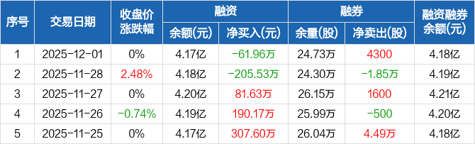 中再资环:融资净偿还61.96万元,融资余额4.17亿元(12-01)